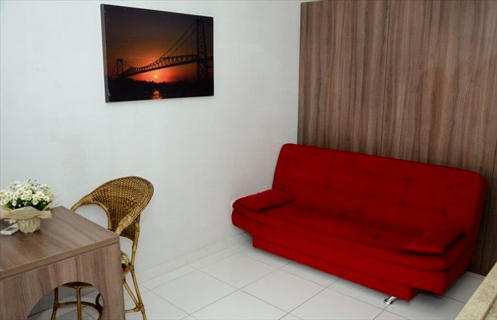 Apartamento perfeito para viagem a trabalho e casal com filho, fica no térreo, ambiente seguro e arejado. O quarto possui cama tamanho Queen, e TV a Cabo, possui também, uma cozinha completa, mesa para trabalho, acesso a internet, um sofá cama muito confortável e uma varanda com mesa e cadeira para contemplar o jardim e piscina.