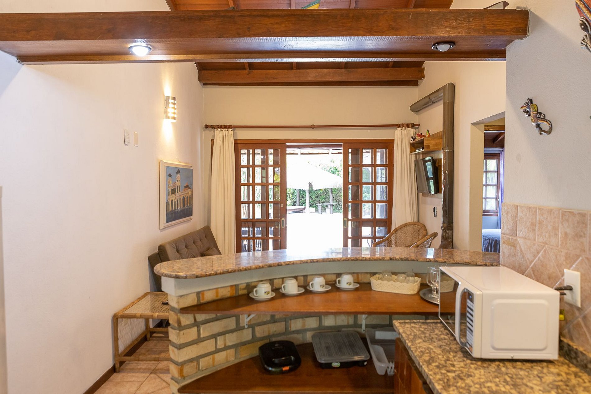 Possui dois pontos de TV a cabo, acesso a internet e ar condicionado nos quartos, ideal para acomodar de 04 a 05 pessoas.