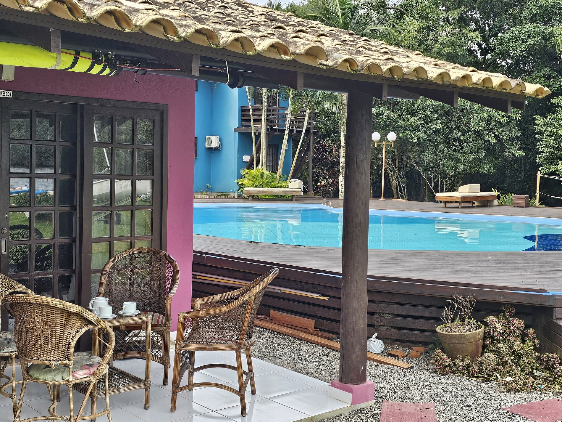 A área externa do condomínio é compartilhada com os demais chalés e apartamentos do condomínio. Possui uma linda piscina disponível para banho até as 21 horas, salão de jogos, bicicletas para uso dos hóspedes em passeios e também caiaques para passeios na lagoa, sendo que tanto o uso das bicicletas quanto o uso dos caiaques NÃO incidem custo adicional.